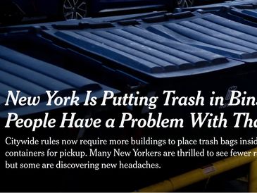 New York Times: New York Is Putting Trash in Bins. Some People Have a Problem With That. Citywide rules now require more buildings to place trash bags inside containers for pickup.
