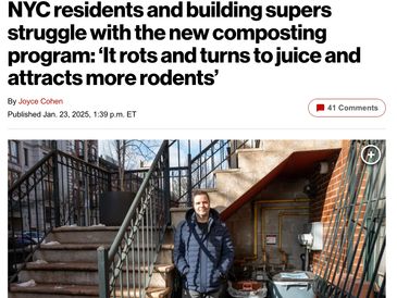 An article by Joyce Cohen from the NYPost about our City's composting program that mentions me is below. Another NYC program that could have been thought out better had they asked those who are handling these bags.